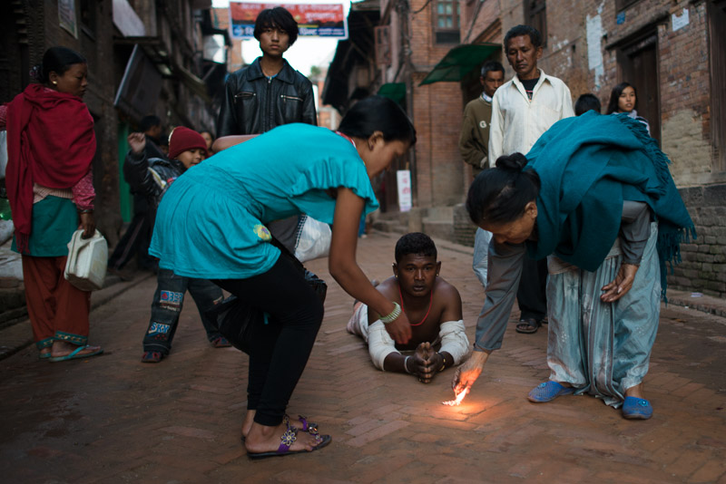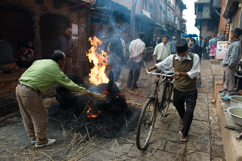 Sorry for the lack of updates. I’ve been trying to take full advantage of my time here. Most days that has meant being out on the streets shooting by 5:30am, and crashing at about 9 at night, without much in the way of downtime in between. I’ve taken more than 6000 pictures so far, though the majority of them will be deleted, partly because I’ve been shooting from moving buses or pushing the limits of the camera by shooting before the sun comes up or after it goes down. If there end up being six in there that I’m really happy with that’s almost one good shot per day. For now, I’ve uploaded a few images from Bhaktapur during the Dashain festival.